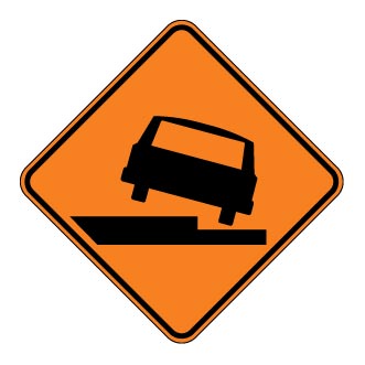 Le panneau « Présence d’une dénivellation » (T-140-D) indique la présence d’une dénivellation supérieure ou égale à 50 mm entre la chaussée et l’accotement, ou entre l’accotement et le terrain naturel ou entre deux voies.