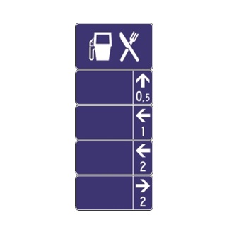 Le panneau « Acheminement » (I-570-3) indique l’itinéraire à suivre pour atteindre les établissements signalisés sur l’autoroute.