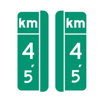 La plaquette « Repère kilométrique » (I-260-5) indique à l’usager de la route la distance parcourue à partir du point d’origine de la route sur laquelle il circule.