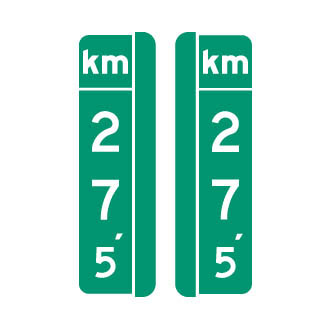 La plaquette « Repère kilométrique » (I-260-6) indique à l’usager de la route la distance parcourue à partir du point d’origine de la route sur laquelle il circule.