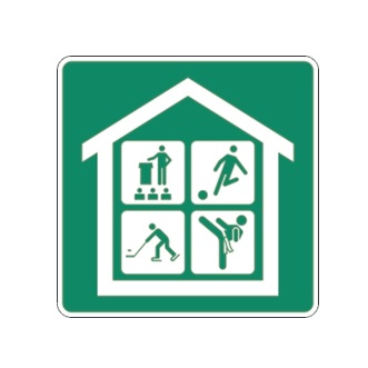 Les panneaux « Équipements publics » (I-370) indiquent les équipements publics qui sont utilisés par une clientèle locale ou régionale. Le panneau « Centre communautaire » I-370-3 est composé de différents éléments selon les activités offertes.