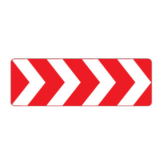 Les panneaux « Chevron d’alignement » (D-301) délimitent l’alignement horizontal d’une courbe sur un chemin public. Le panneau D-301-2 doit être installé sur l’îlot central d’un carrefour giratoire, tel que décrit au chapitre 3.38 du Tome V des Normes – O