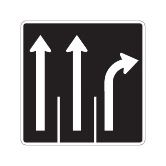Le panneau « Direction des voies » (P-100-8-D) indique, pour les voies visées ce qui suit : Voie de gauche et voie centrale : aller tout droit et voie de droite : tourner à droite.