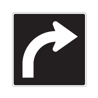 Le panneau « Direction des voies » (P-100-2-D) indique de tourner à droite pour la voie visée.
