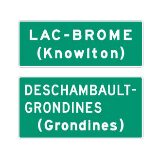 Les panneaux « Entrée d’agglomération » (I-150-5) indiquent à l’usager de la route le nom de l’agglomération ou de la réserve indienne dans laquelle il entre.