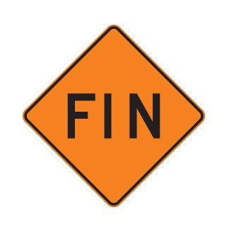 Le panneau « Fin des travaux » (T-40) indique la fin d’une aire de travail.