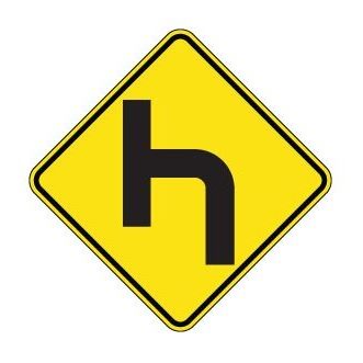 Le panneau « Intersection en T dans une courbe » (D-160-2-G) indique l’approche d’une intersection en forme de T, dont la tige est en courbe.