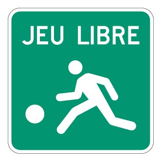 Le panneau « Jeu libre dans la rue » (I-359) indique à l’usager de la route les endroits où le jeu libre est permis dans la rue.