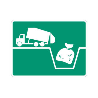Le panneau «Lieu d’enfouissement sanitaire» (I-360) indique la présence d’un lieu d’enfouissement sanitaire.