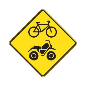 Les panneaux « Passage pour sentier polyvalent » (D-270-19) indiquent la présence d’un passage pour plusieurs types d’usage, dont les bicyclettes, la motoneige, la motoquad et l’équitation.