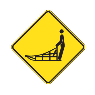 Les panneaux « Passages pour personnes » (D-270-23) indiquent la présence, sur un sentier de VHR, d’un passage de traîneaux à chien