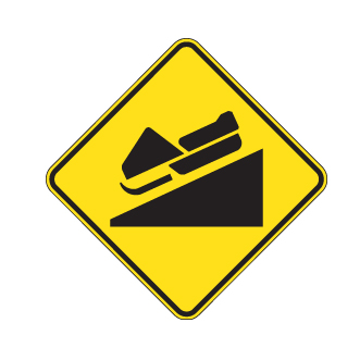 Le panneau « Pente raide descendante » (D-230-10) indique la présence d’une pente dont le niveau d’inclinaison est important.