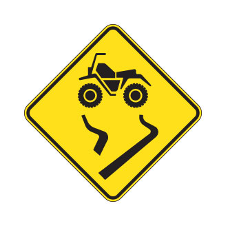 Les panneaux « Sentier de VHR glissant » (D-310-6) indiquent que le sentier risque d’être glissant à certains endroits.