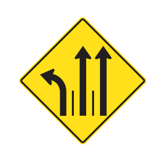 Le panneau « Signal avancé de direction des voies » (D-100-8-G) indique, à l’avance, la voie dans laquelle l’usager de la route doit se ranger pour effectuer une manœuvre à une intersection.
