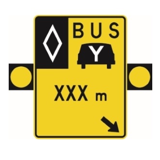 Le panneau « Signal avancé de voie réservée » (D-250-1-G) indique, à l’avance, l’existence d’une voie réservée à certaines catégories de véhicules. Le panneau D-250-1-G doit être installé latéralement.