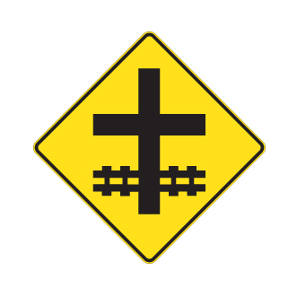 Les panneaux «Signal avancé d’un passage à niveau» D-180-4 indiquent, la proximité d’un passage à niveau. Lorsqu’un passage à niveau est situé à au plus 50 m d’une intersection, dans un milieu urbain, et à au plus 125 m, dans un milieu rural.
